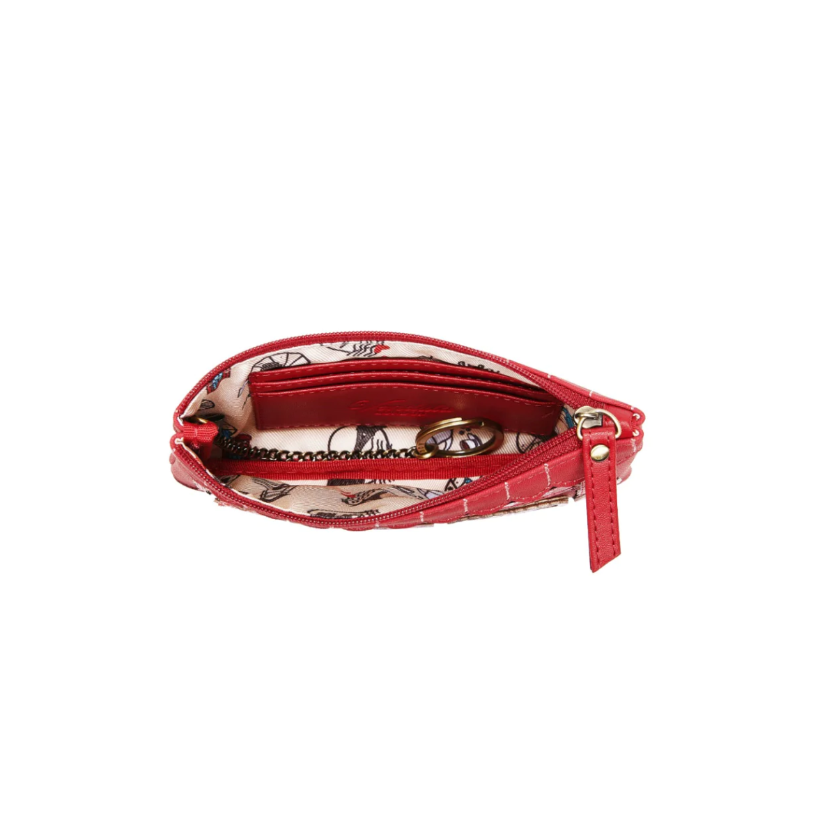 A delightful zippered coin purse with loads of character from the The Chocolate Box collection. Compact yet full of charm, it’s perfect for storing coins, notes and cards with ease. It also features a built-in chain and keyring, so you can attach it to your bag or keys for quick access. Decorated with beautiful printed and appliqué details inspired by a chocolate shop, this purse is ideal for anyone who loves playful, stylish accessories with personality.