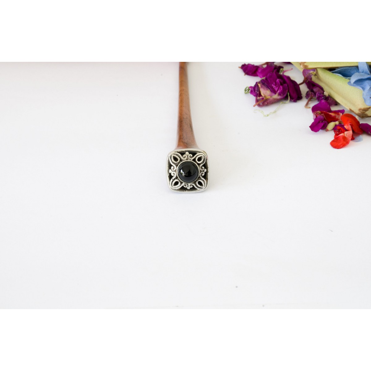 Precioso diseño decorado con un abalorio de alpaca con ónix o piedra luna.