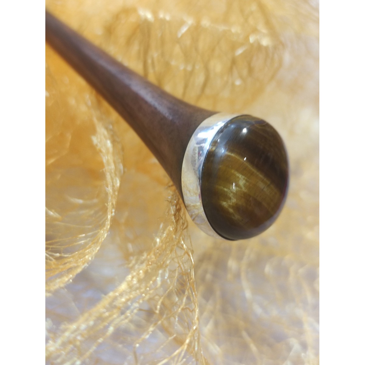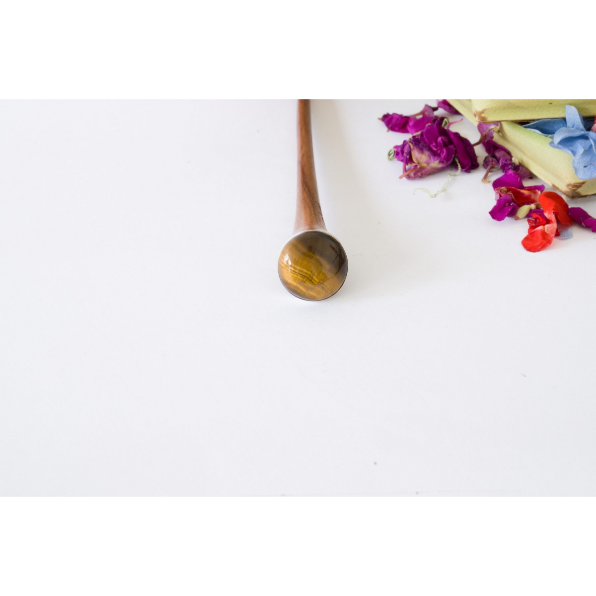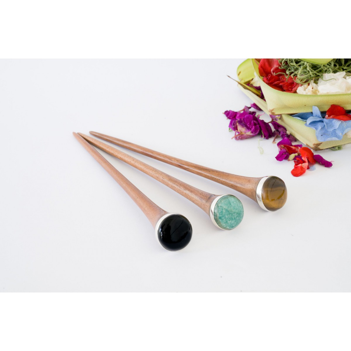 La joya más preciada. Una delicada piedra semipreciosa engarzada en un bisel de plata decora este bonito pincho para el pelo elaborado con madera de sono.
